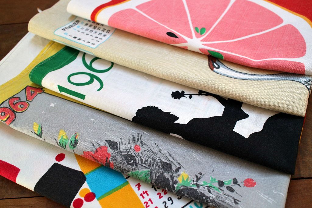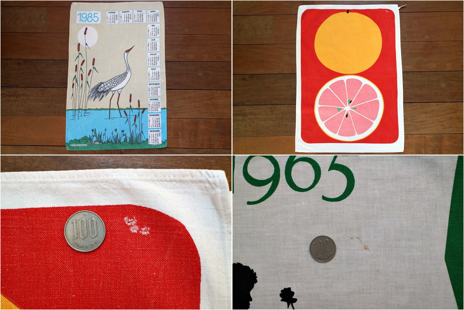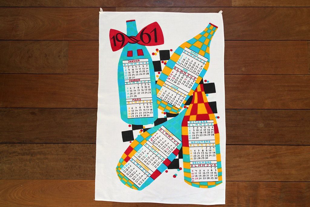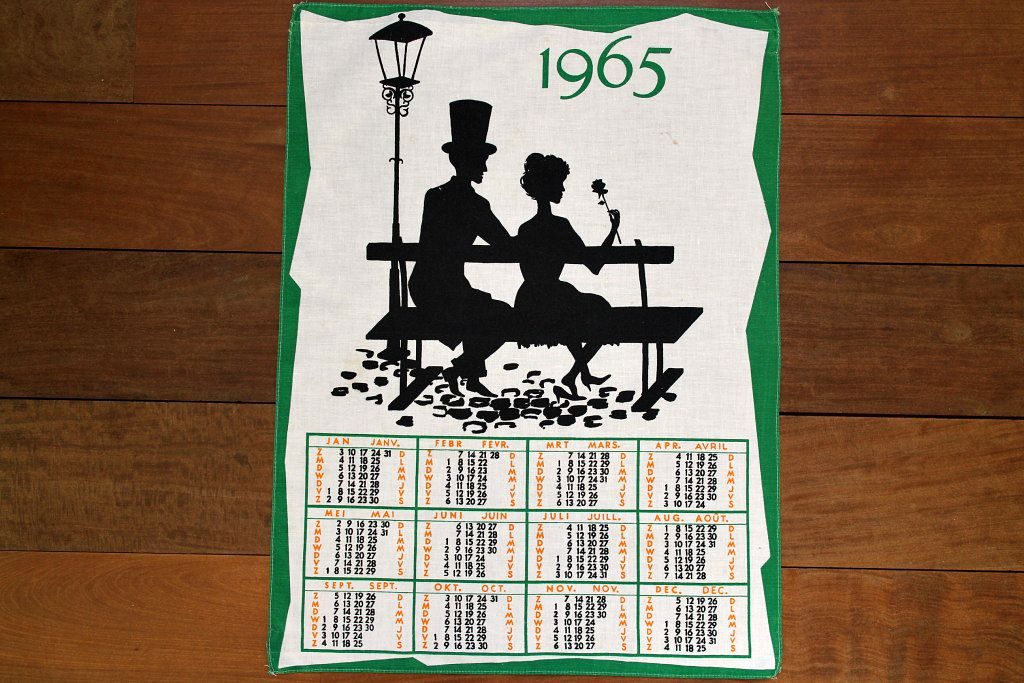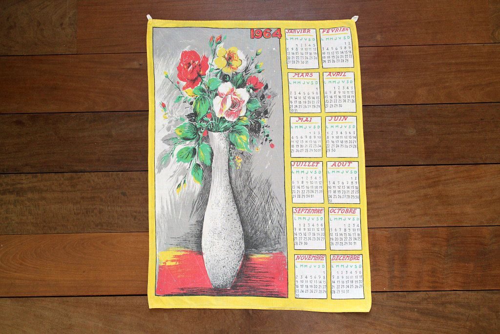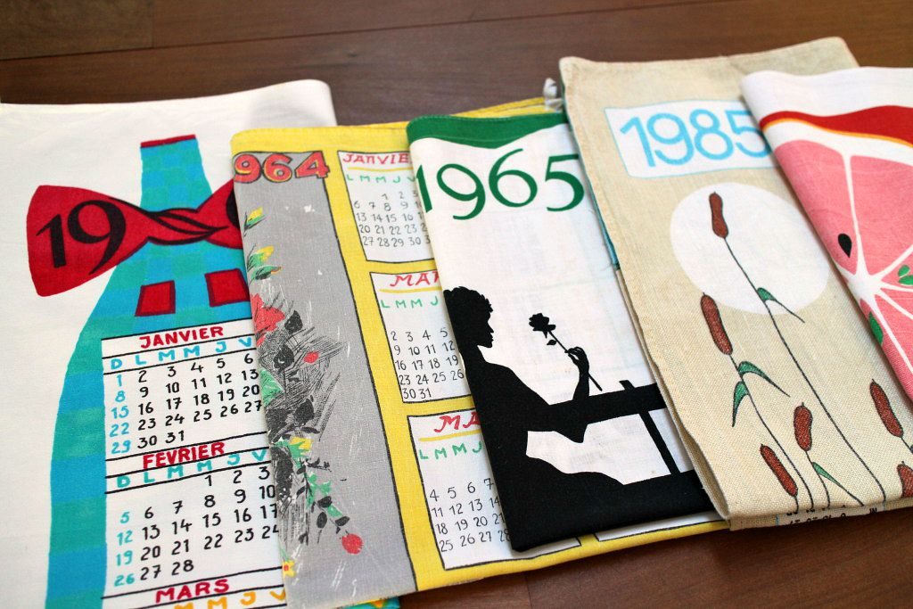 ベルギーの蚤の市で見つけた1960年代から80年代にかけてのカレンダー付きティータオル(キッチンタオル)。