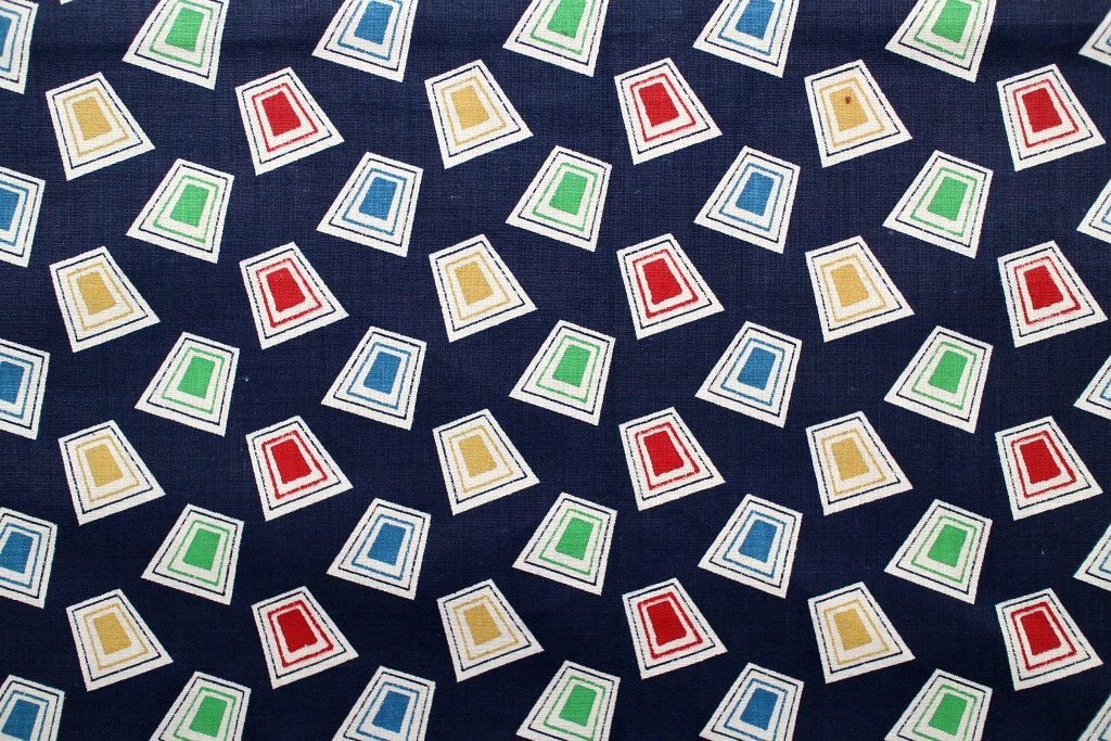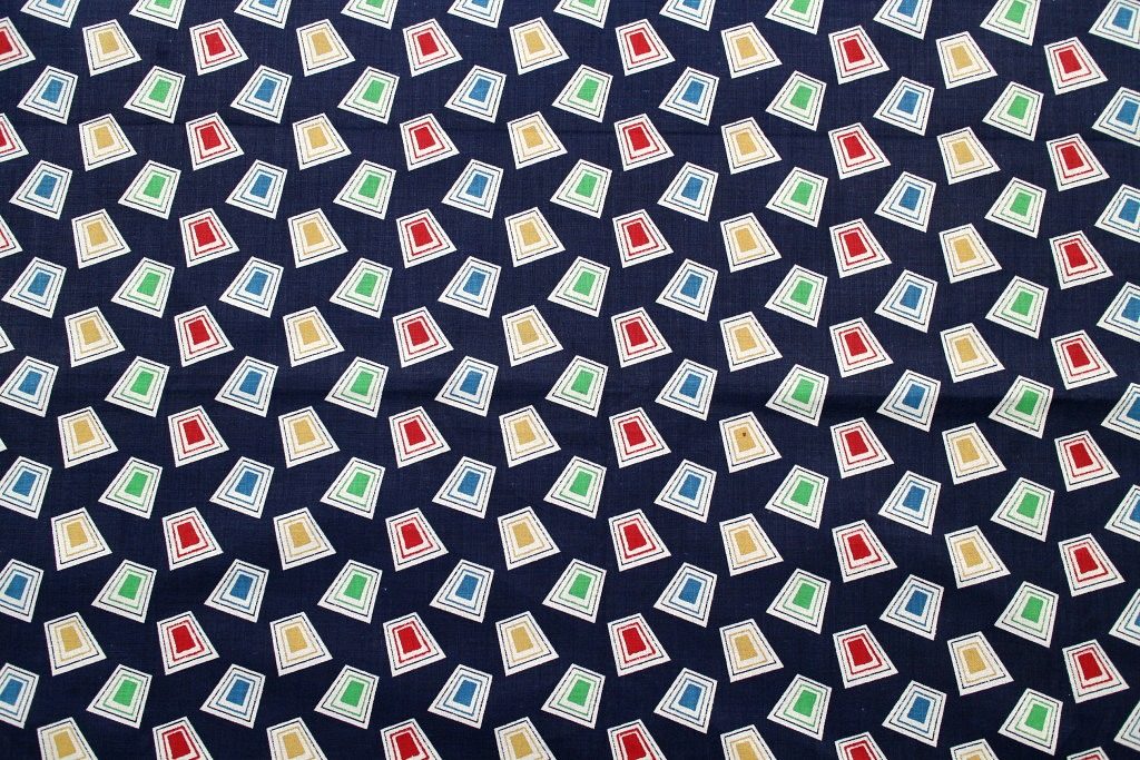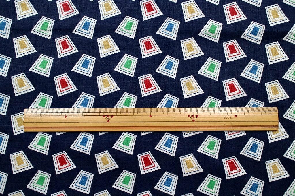 60’sデッドストック カラフル四角が広がる濃紺ヴィンテージファブリック 幅75cm
