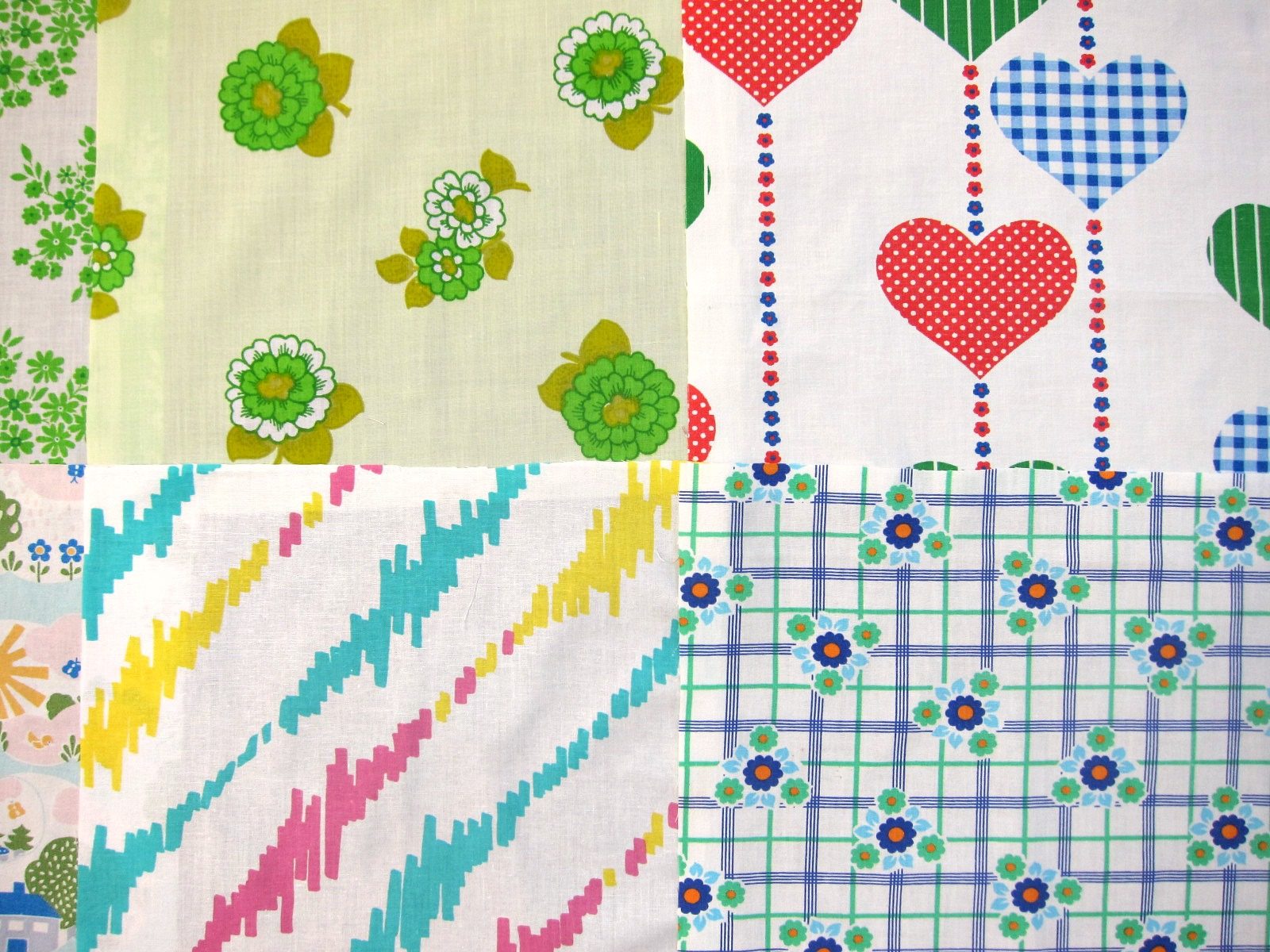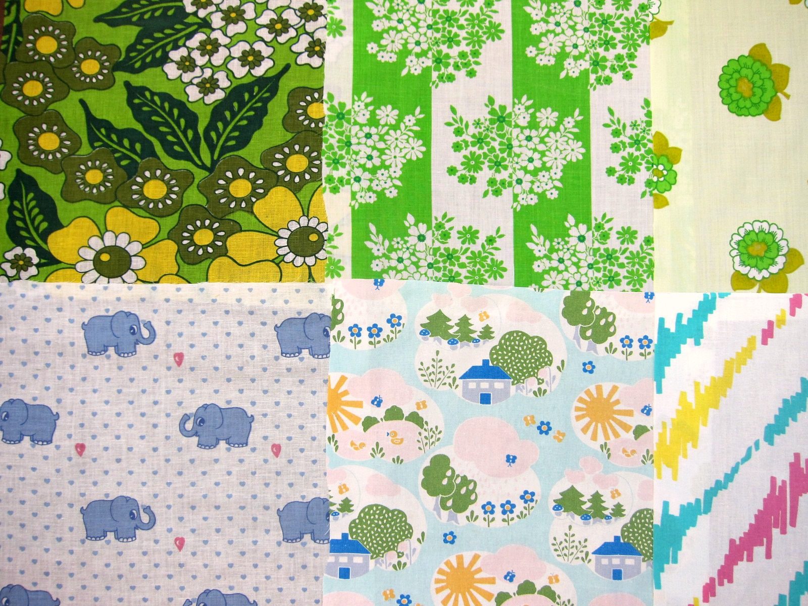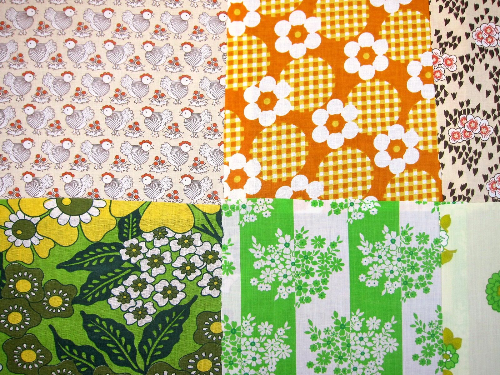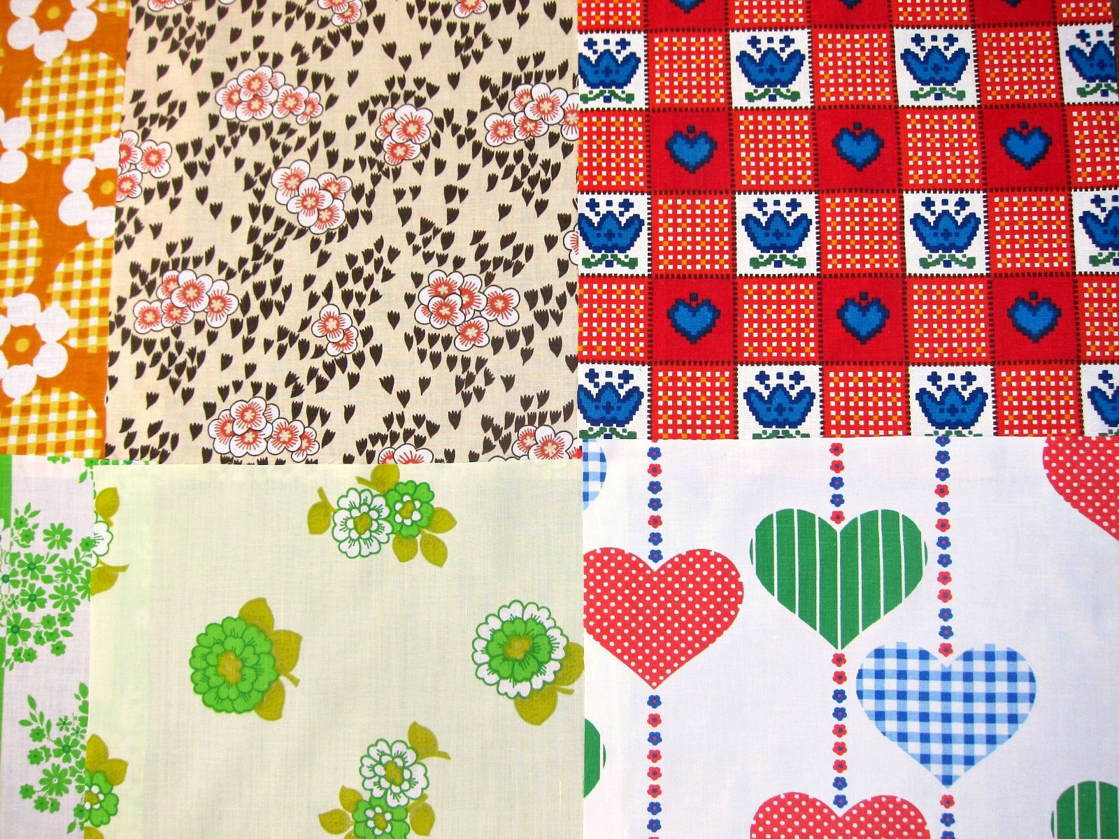 コンテンツにスキップ70年代ヴィンテージはぎれ 暖色系・グリーン系など 12枚入り