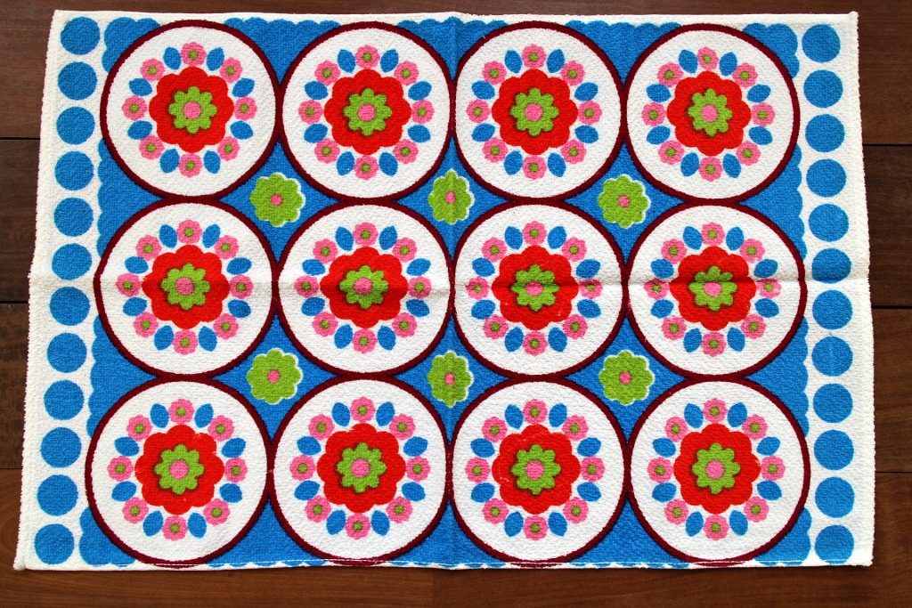 70年代RETRO 東欧らしい色使いの花柄ヴィンテージタオル(新品) 43cm x 66cm