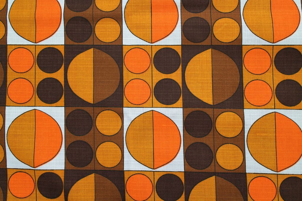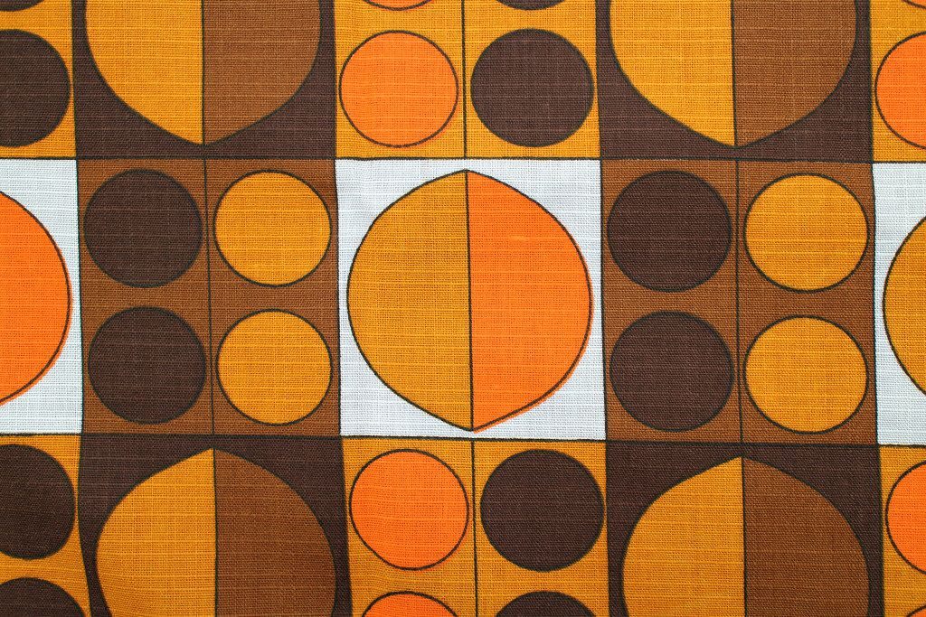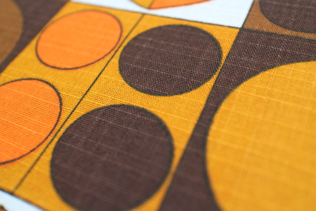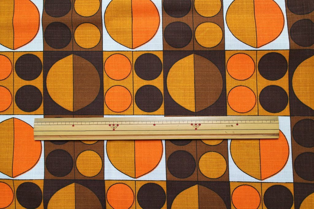 オレンジ〜ブラウンのしっとりとした色使いの円模様が並んだ気分が高まるレトロ柄。