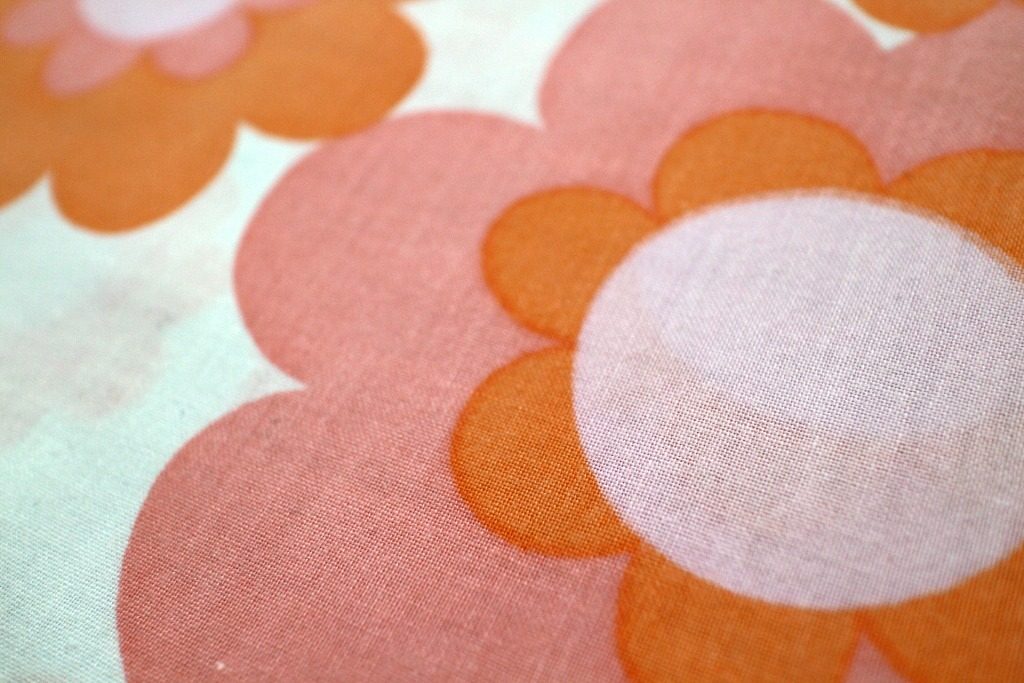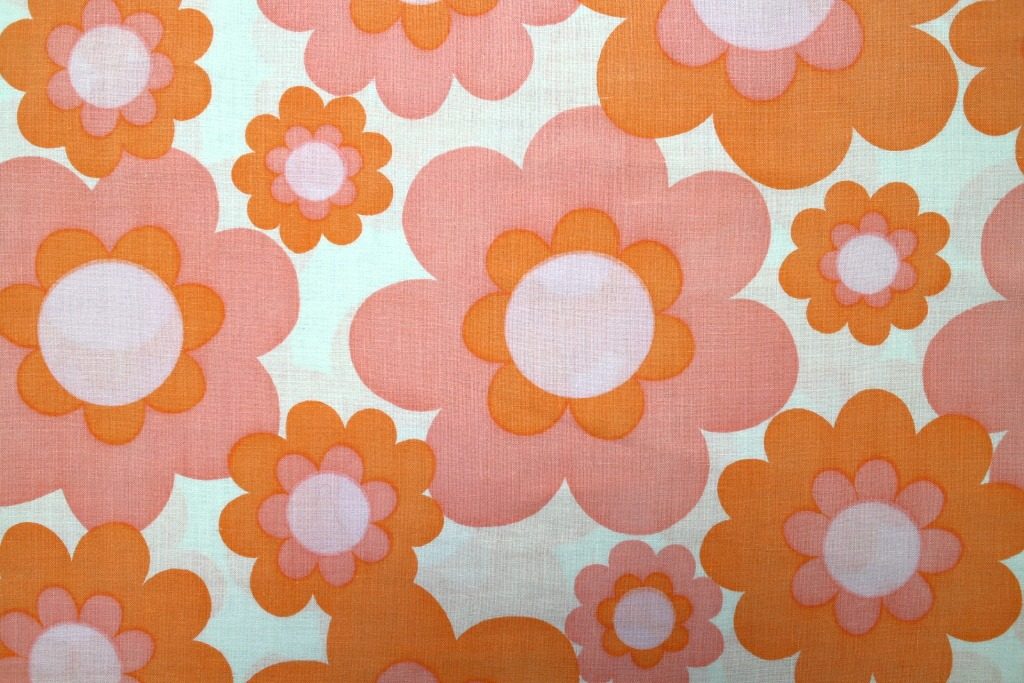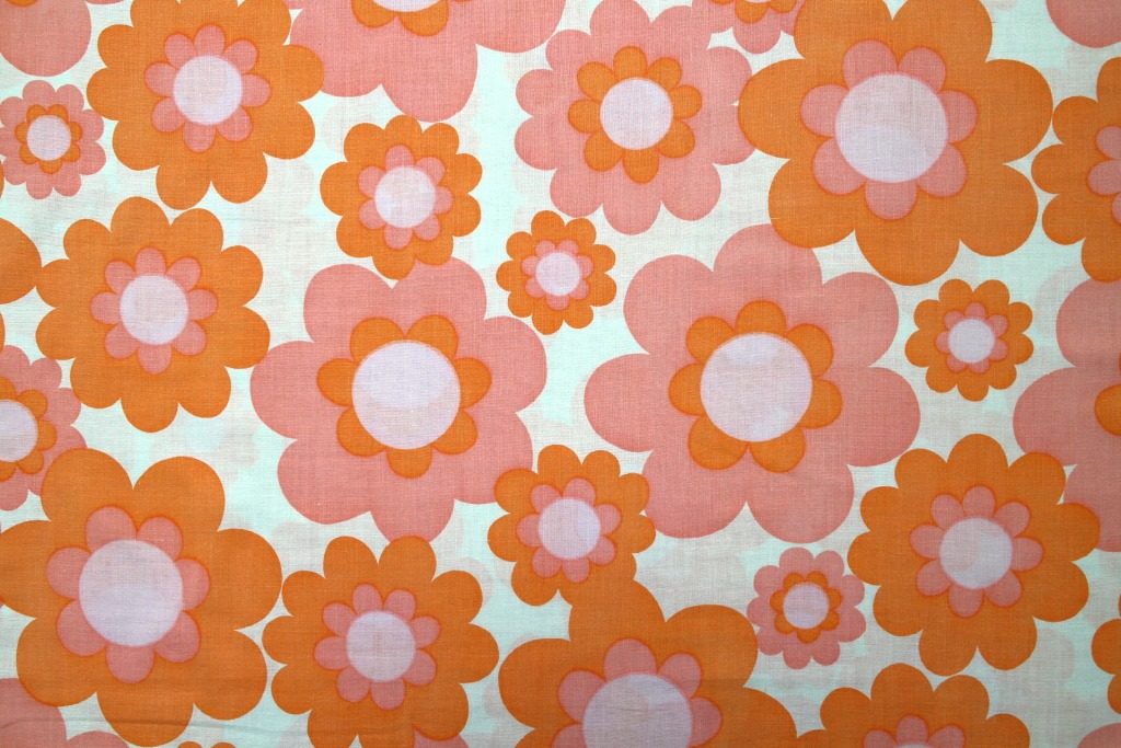 コンテンツにスキップ大判サイズのポップフラワーがプリントされた70年代のレトロファブリック。