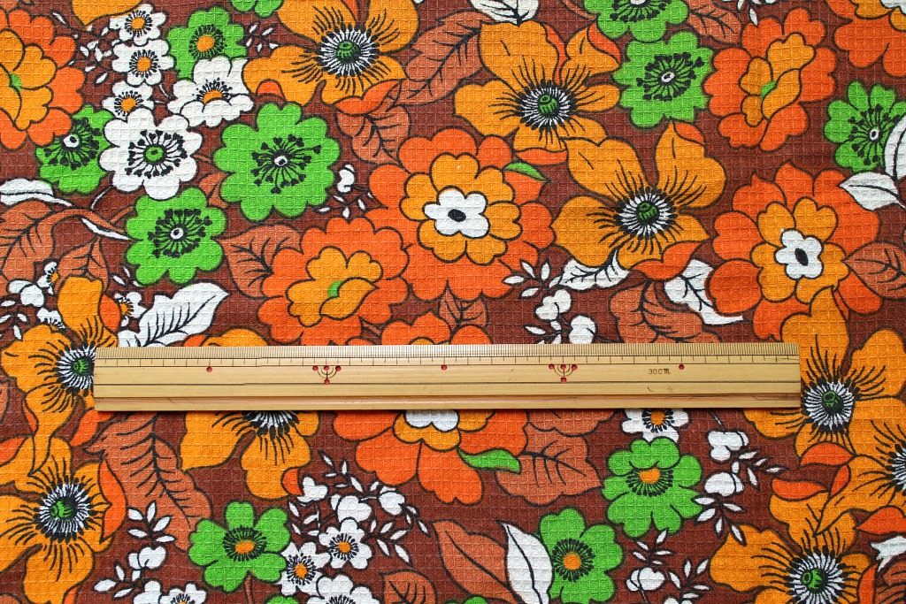 コンテンツにスキップ70sVintage イスラエル発花柄レトロファブリック(ブラウン) 60cmx90cm