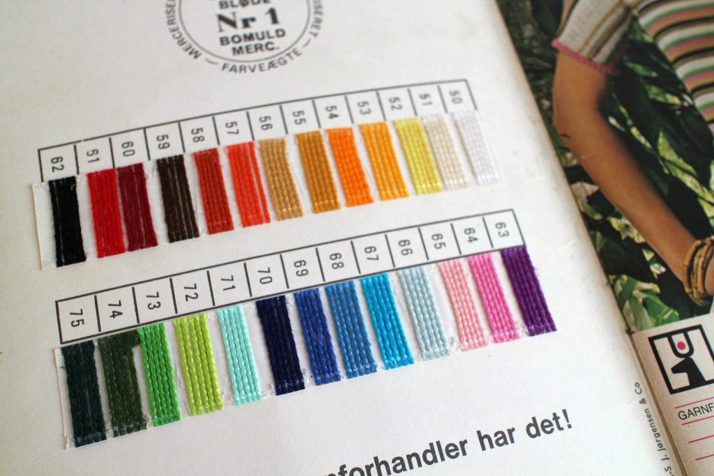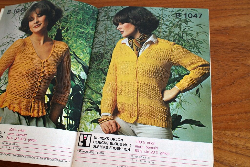 コペンハーゲンのヴィンテージショップで見つけた80年代前半に出版されたニット雑誌。 sol og Sommer (太陽と夏) というタイトルにあるように夏物ニットが中心ですが、デンマークの夏は短いのでしょうか、長袖も豊富に収録されています。 レアな糸の色見本付き。 レトロファッションの参考にも。