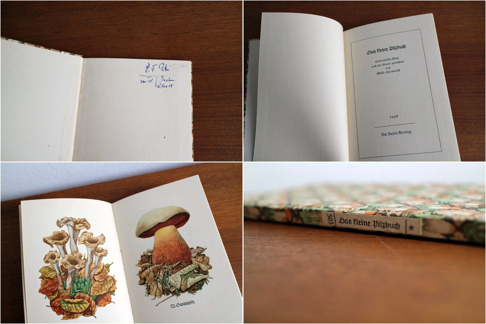 キノコの表紙が特徴的なドイツの書籍、インゼル文庫503番キノコの小さな図鑑。 カラーで36種類のきのこが紹介されています。