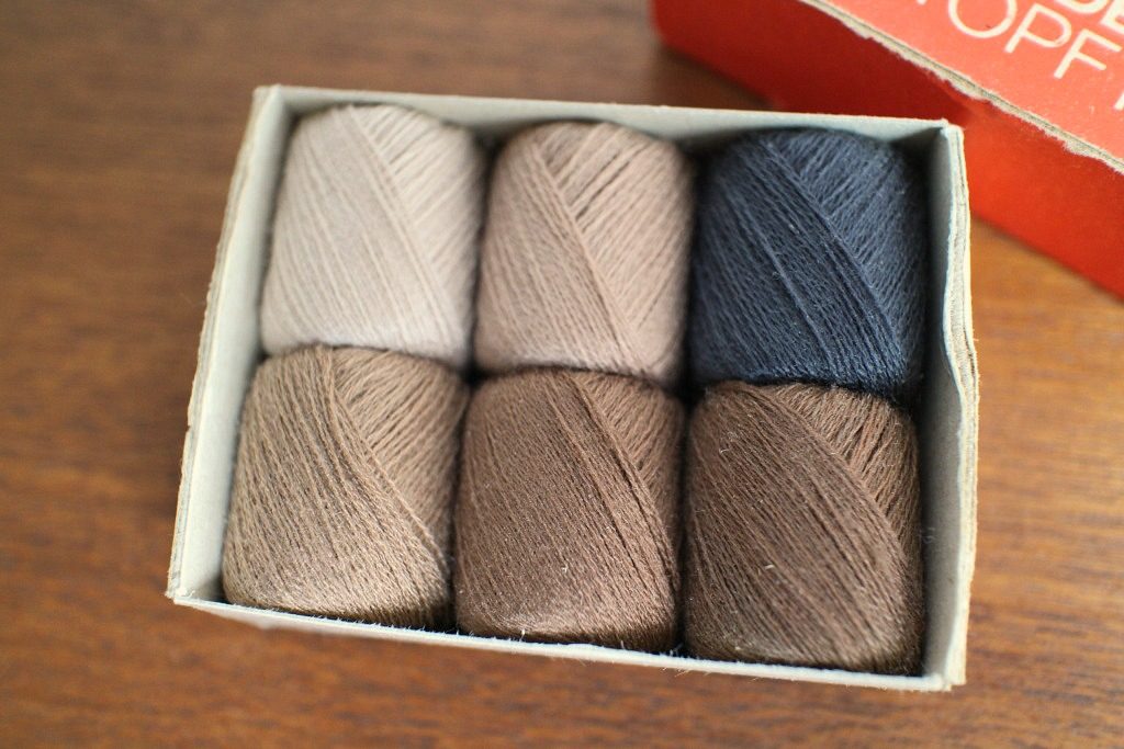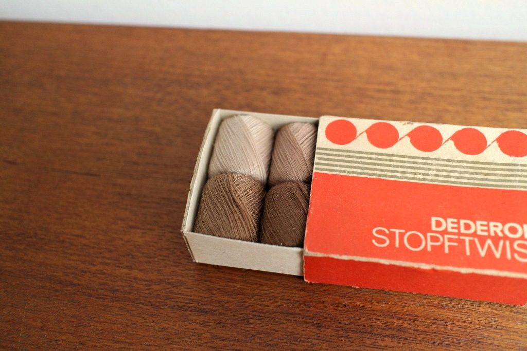 マッチ箱ほどの大きさのノスタルジックな紙箱に収まったレトロ刺繍糸6巻。 ベージュ〜ブラウン・ダークブルーのアースカラー6色入り。 インテリアの脇役&レトロなお裁縫箱作りなどにどうぞ。
