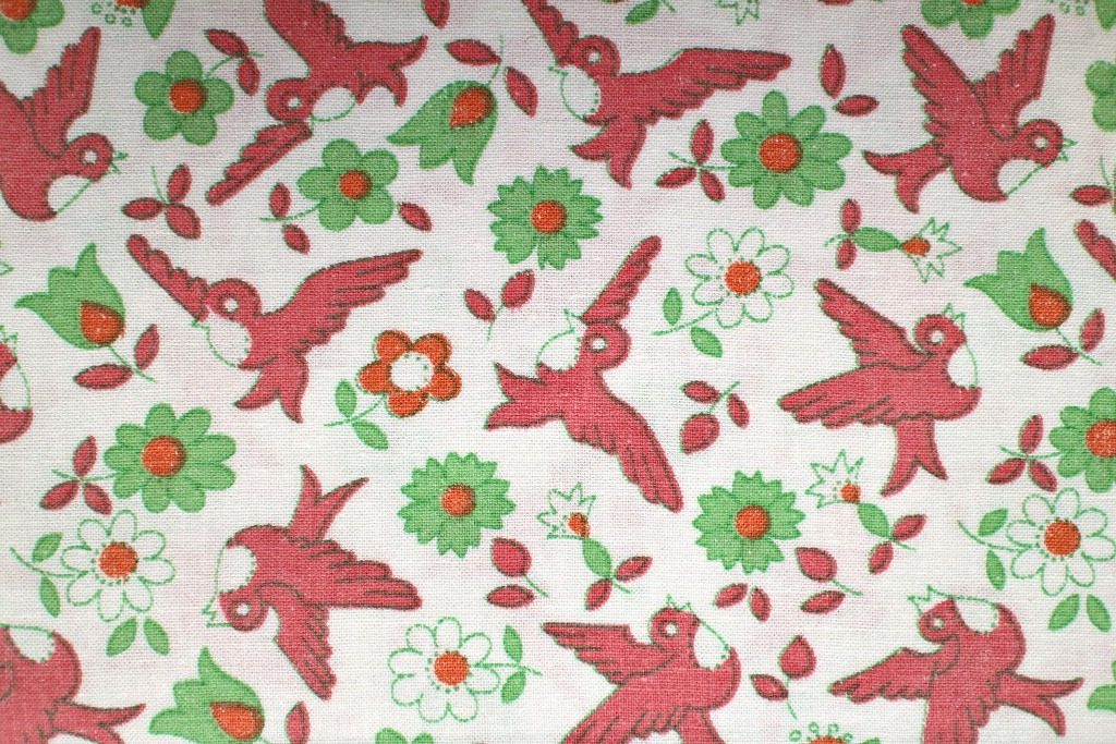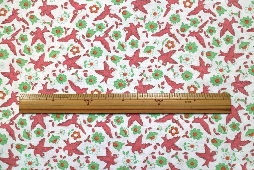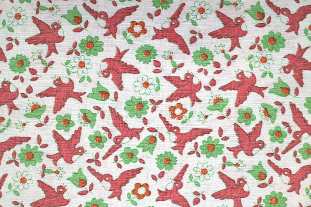 コンテンツにスキップ鳥のさえずり・羽ばたきが聞こえてきそうな、ピンク色バード柄ヴィンテージファブリック。