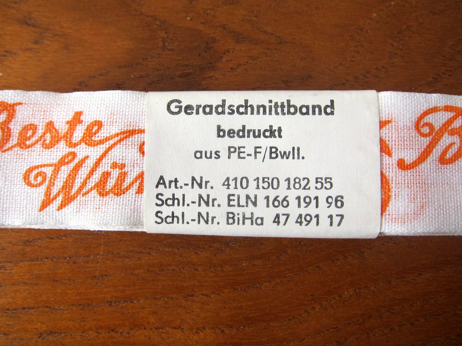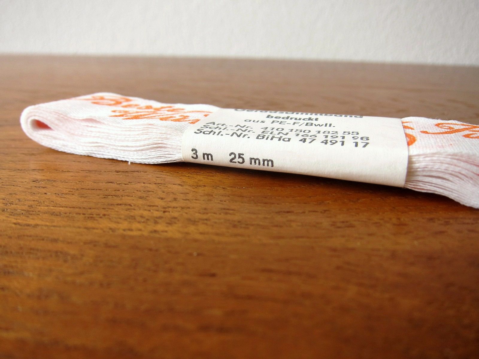 DDR時代のドイツ語メッセージ入りコットンテープ 新品デッドストック