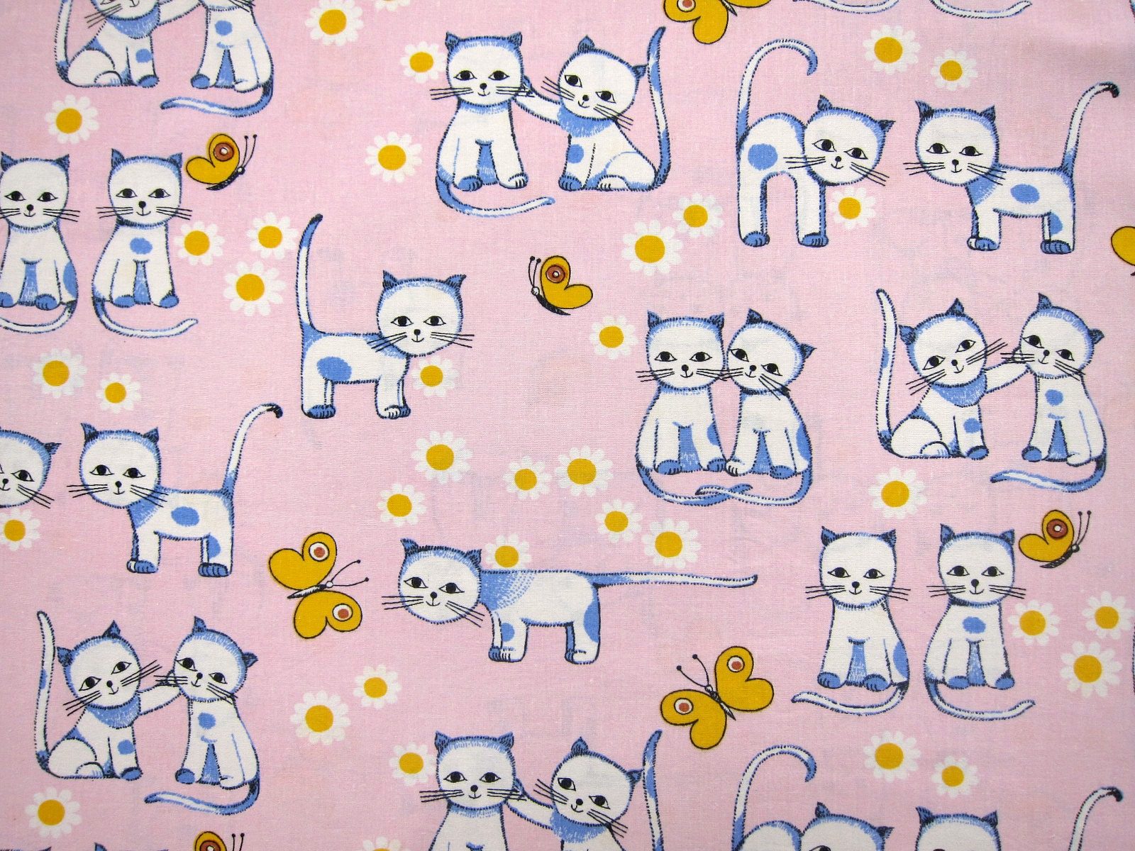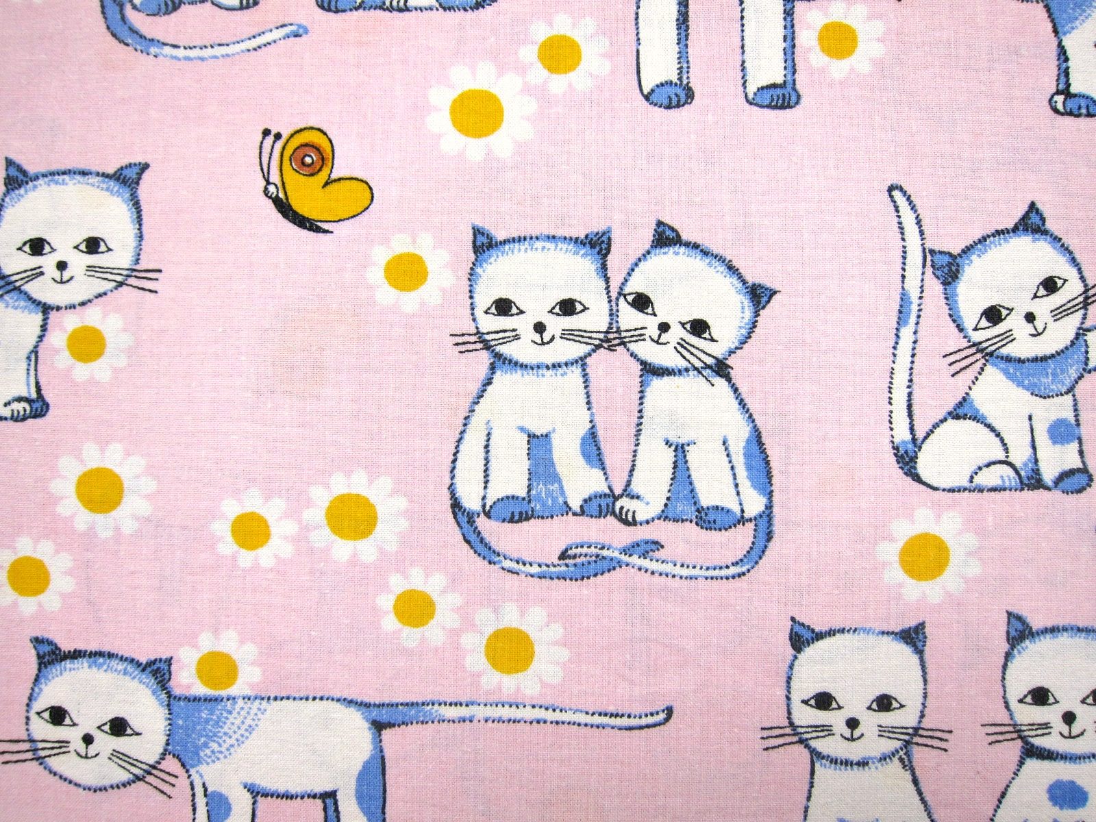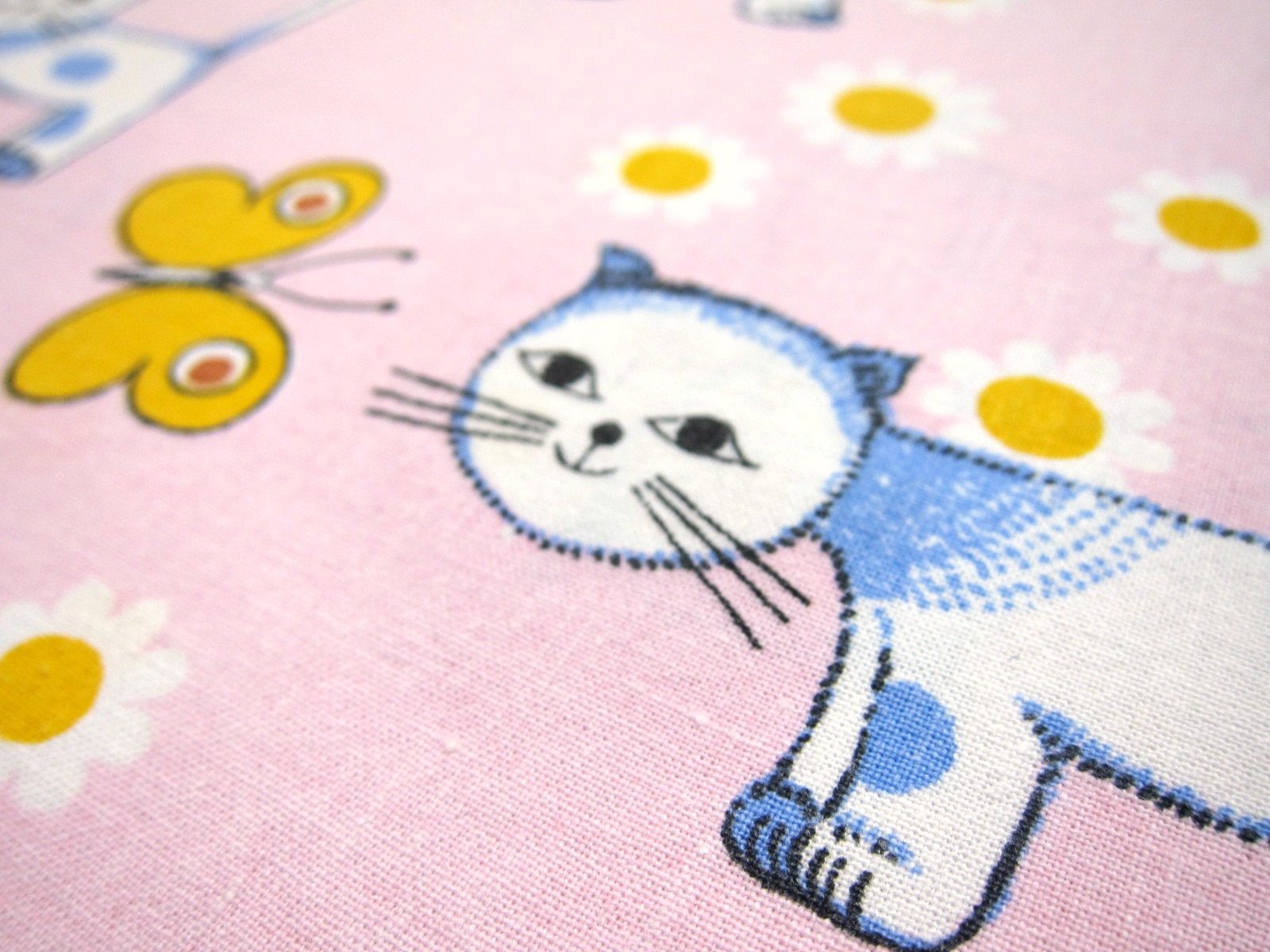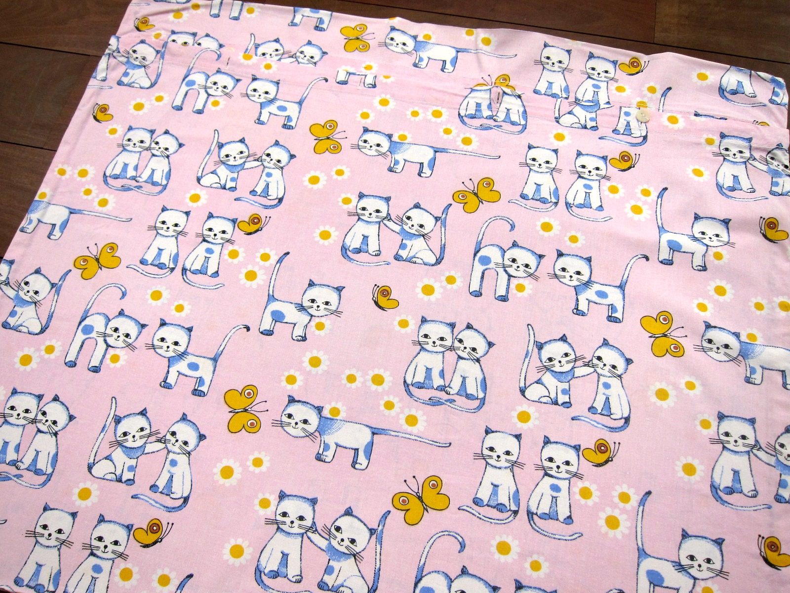 DDR時代のヴィンテージピローケース ピンク 猫のイラスト