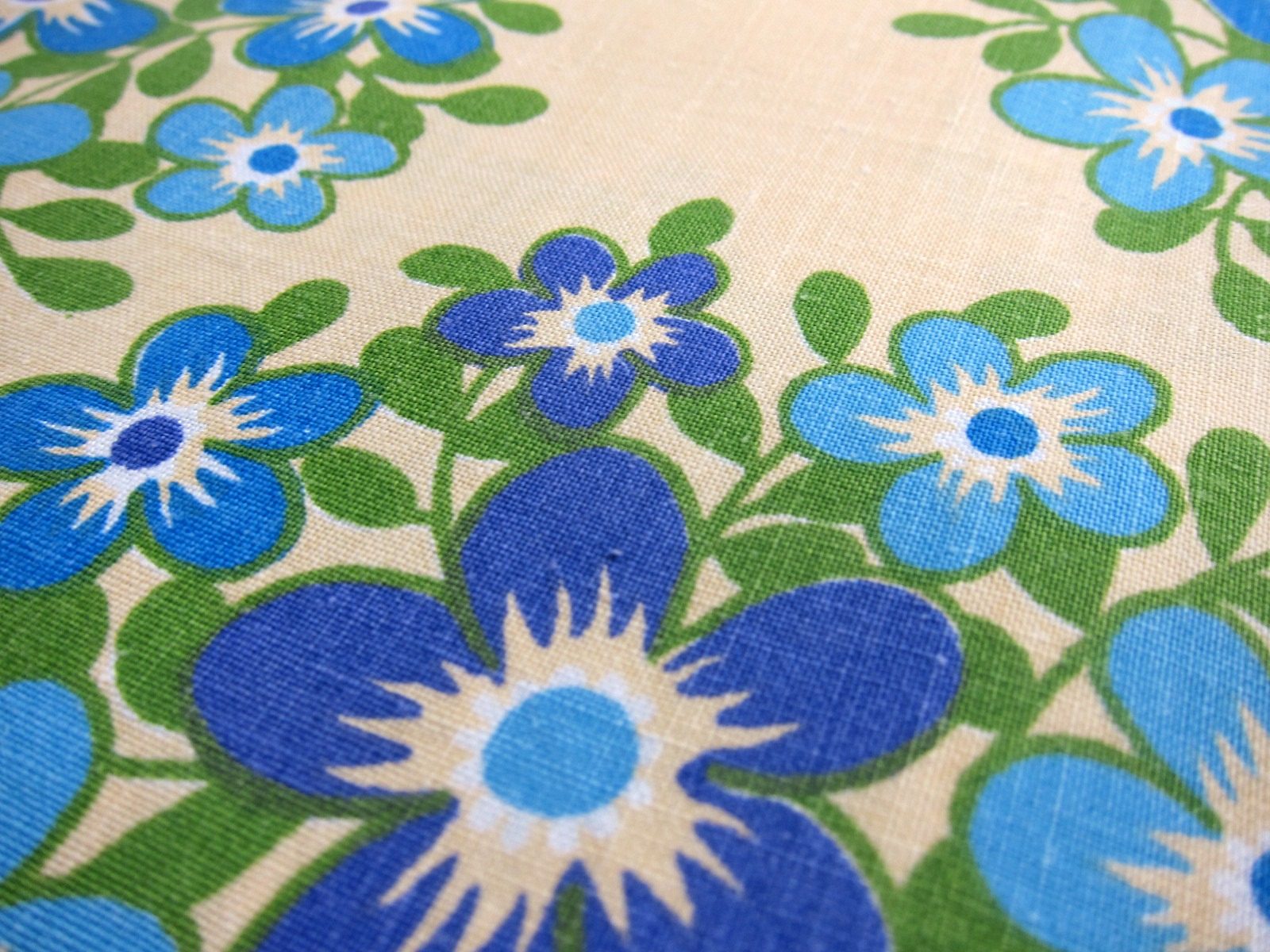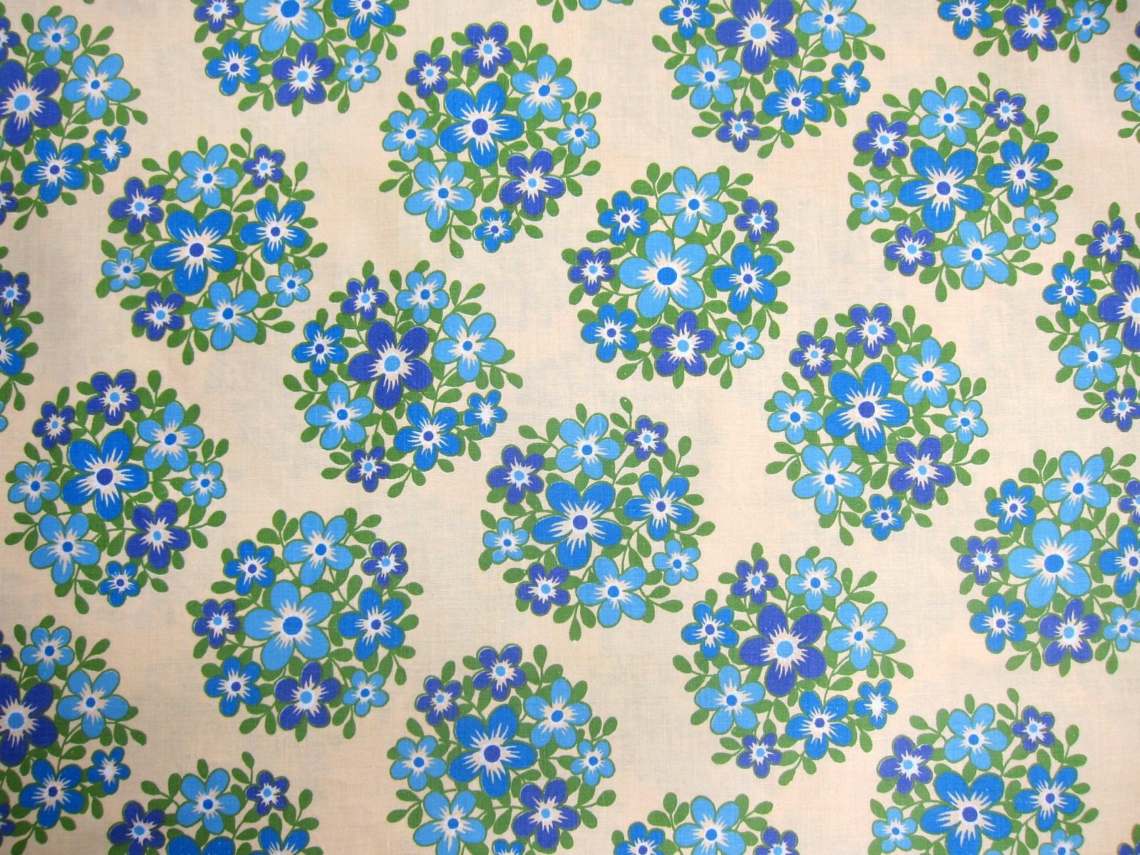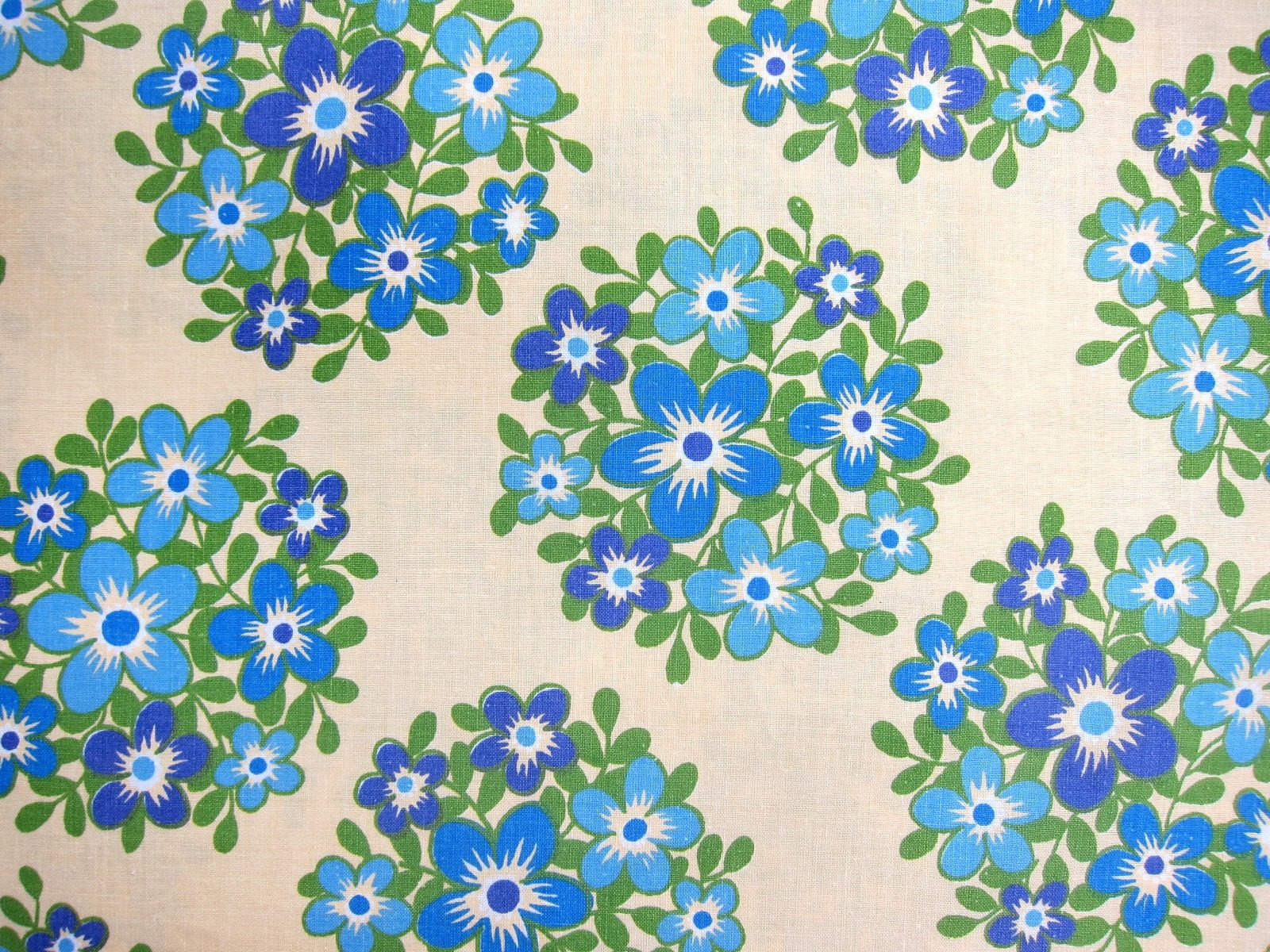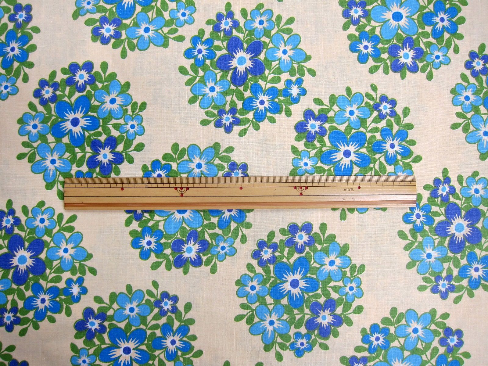 ベースカラーのクリーム色に、爽やかな印象のブルー系のお花のモチーフが入ったヴィンテージファブリック。 DDR/GDR時代オリジナルの生地です。