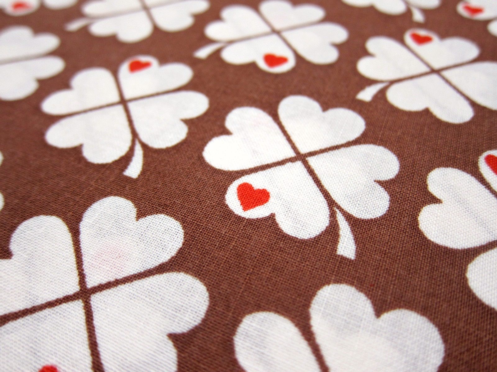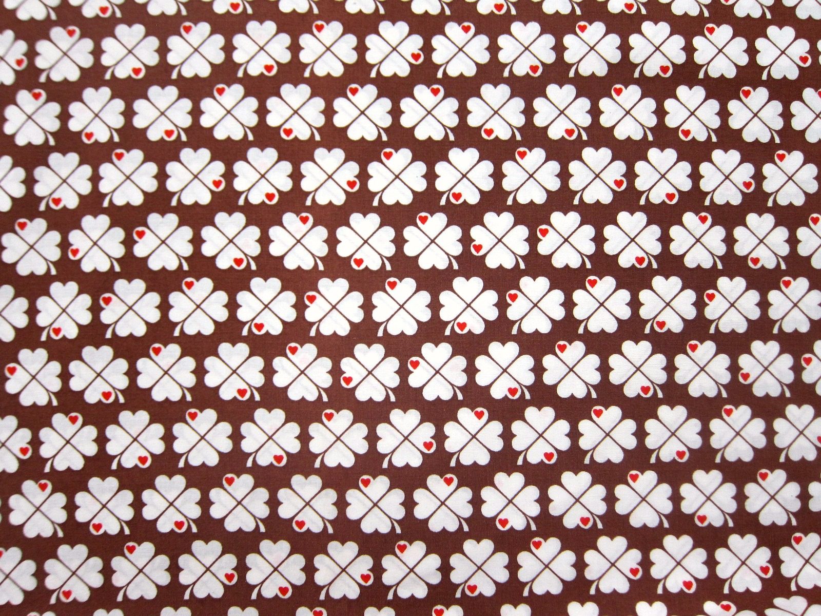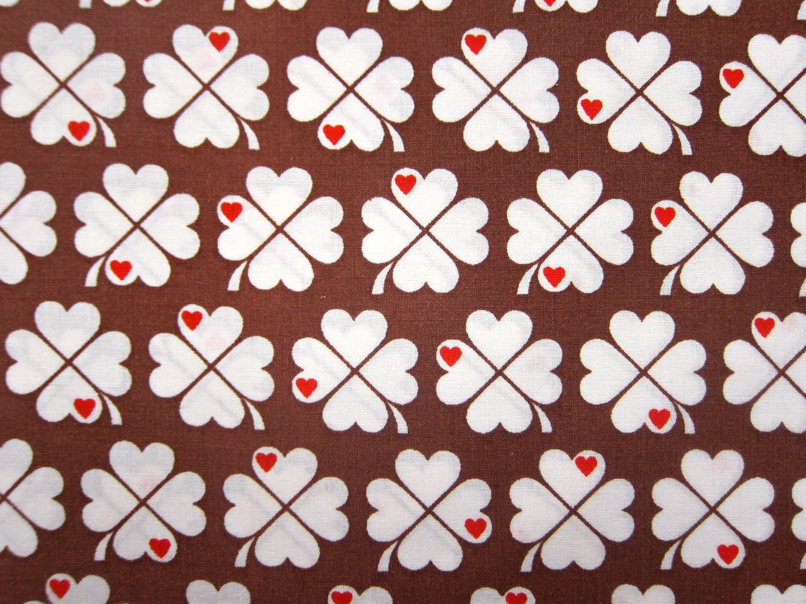 ブラウンの四ツ葉クローバーのモチーフが連続で入った70年代のヴィンテージ生地。