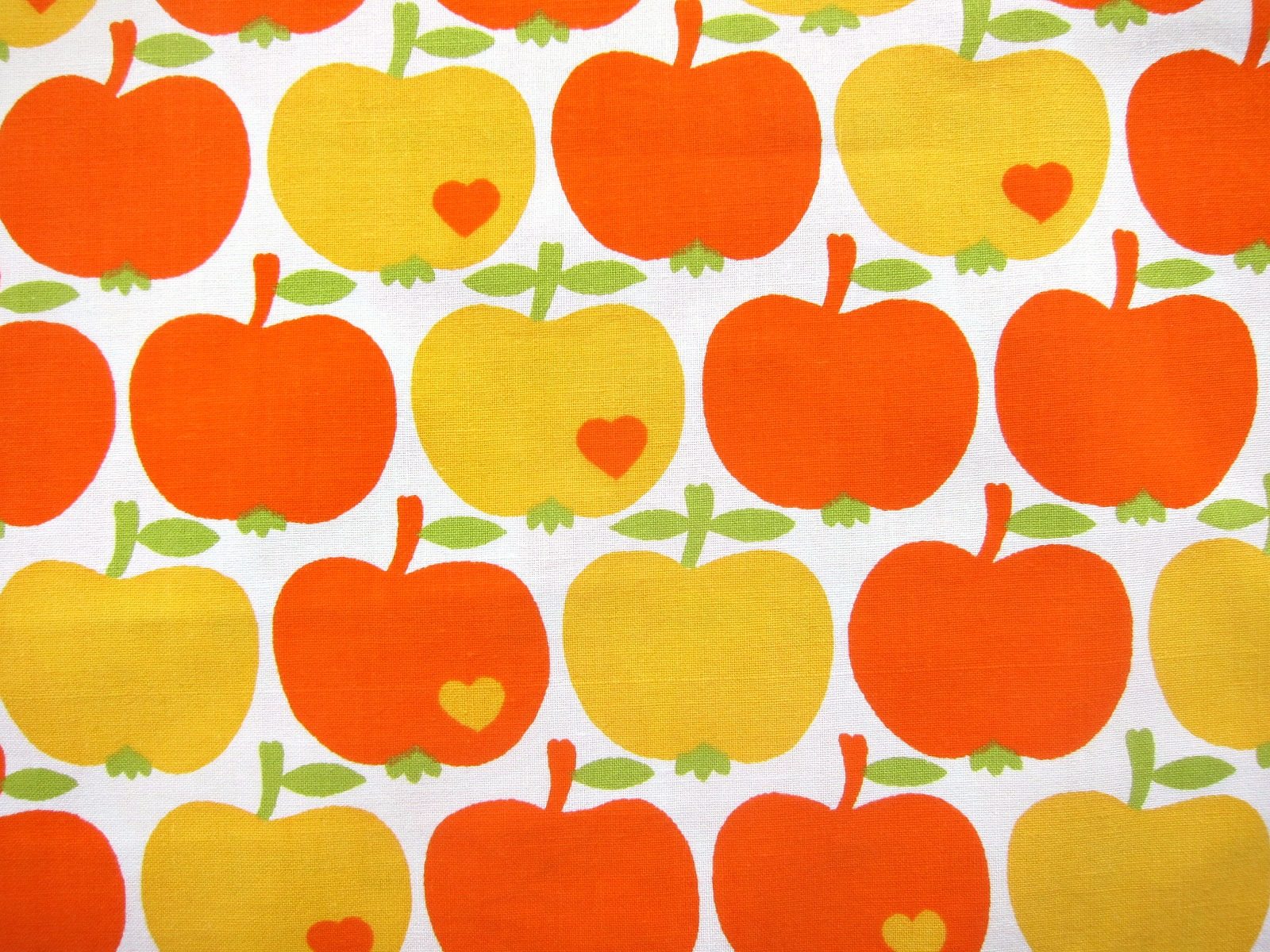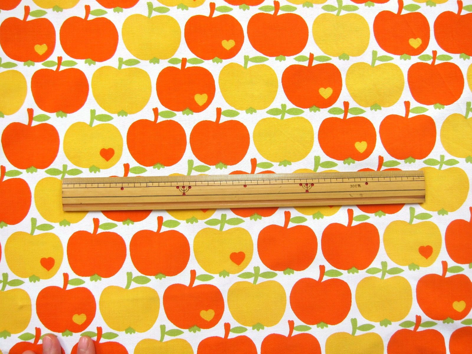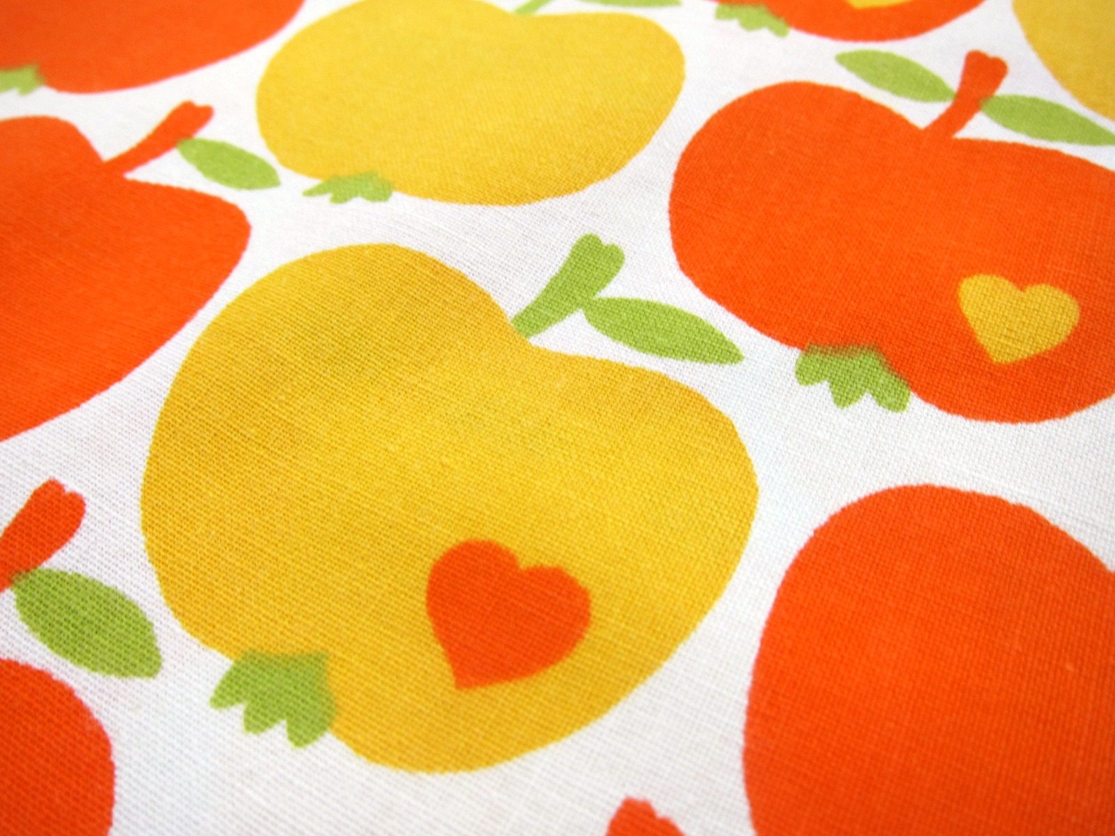オレンジ色と黄色のリンゴのモチーフが連続で入った、大人気グラジエラのヴィンテージファブリック。