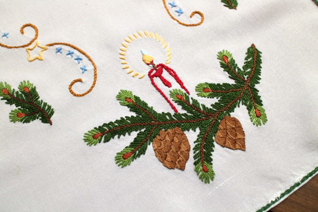 2. もみの木&キャンドルの刺繍入りクロス