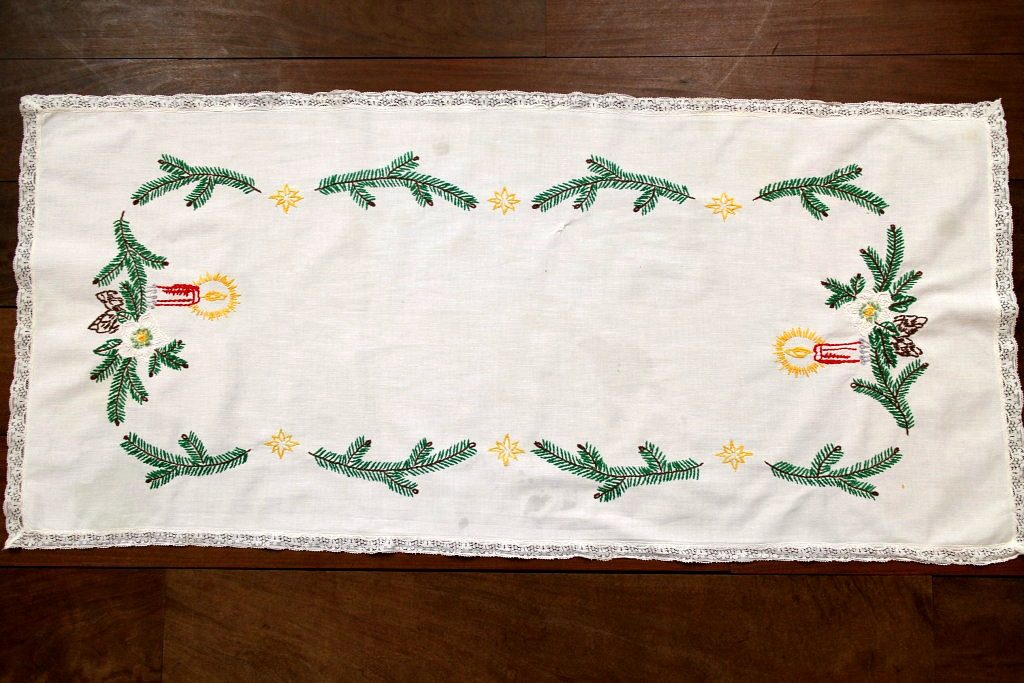3. レースの縁取り&クリスマス刺繍・ハンドメイドテーブルランナー